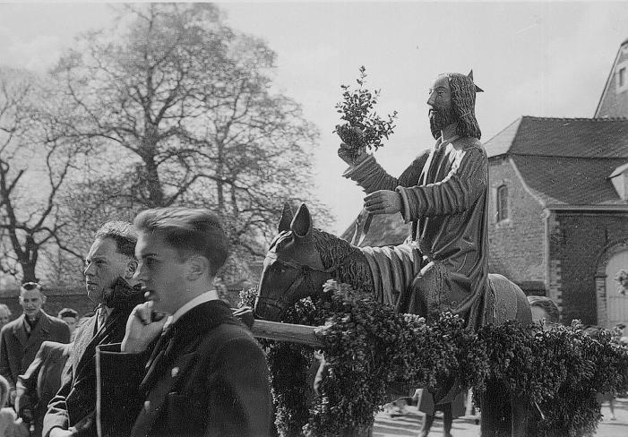 Links vind je een foto van redelijk lang geleden, met de orgininele palmezel. Heeft Jezus daar geen umbrakel op het hoofd ?